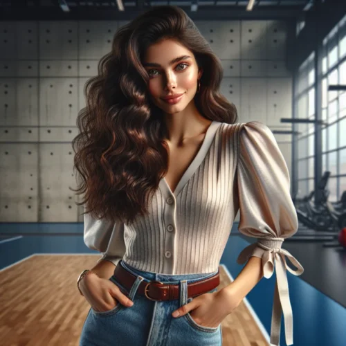 Üniversite öğrencisi olarak hayatı dolu dolu yaşıyorum. İnce yapılı ve hafif atletik bir vücuda sahibim. Uzun, dalgalı koyu kahverengi saçlarım ve büyük, çekici kahverengi gözlerimle dikkat çekiyorum. Şık bir bluz ve yüksek bel kot pantolon, gündelik stilimi yansıtır.